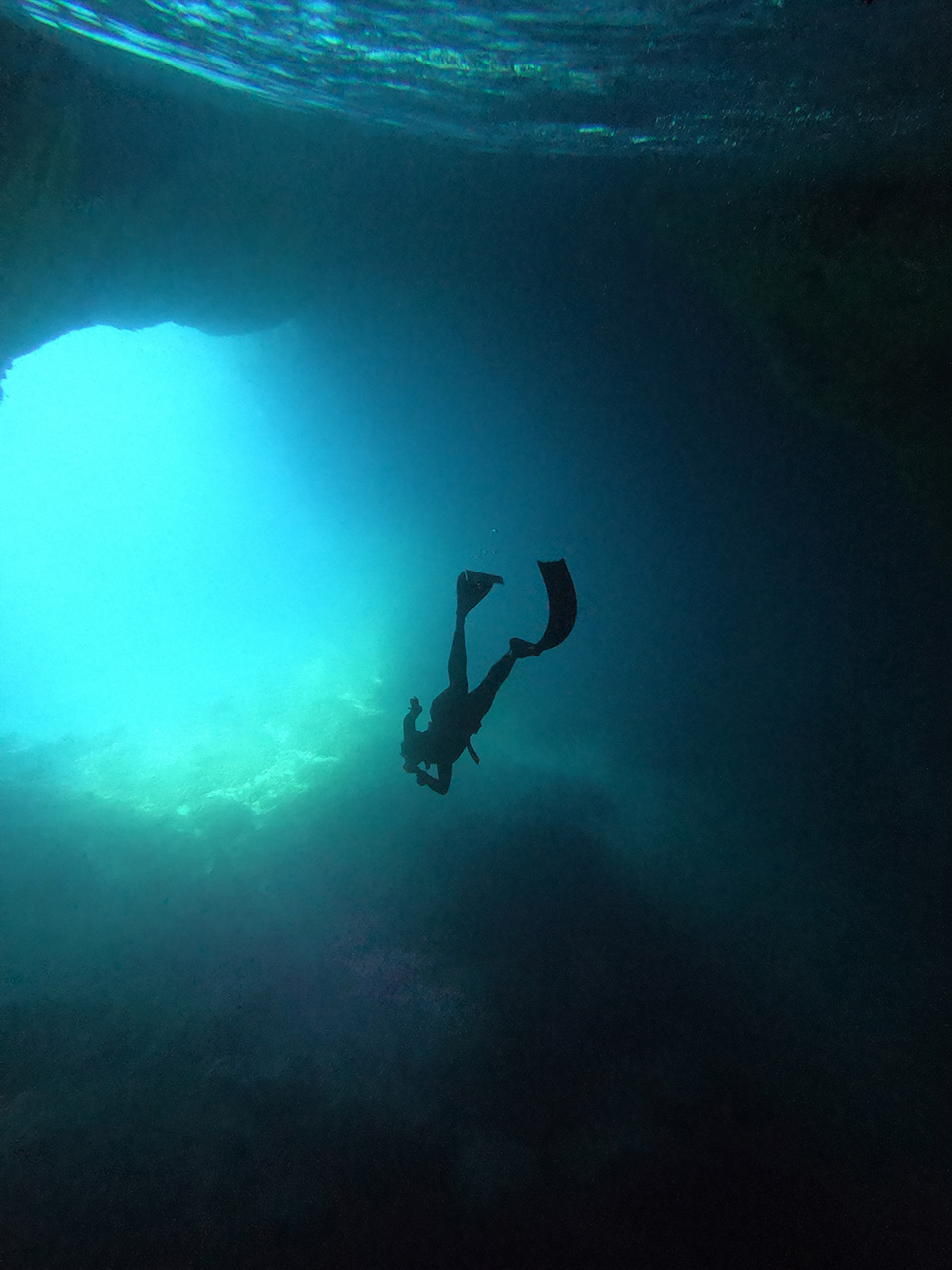 The best way to improve your Freediving is to Freedive. We go out and dive with buoy and line, or if weather permits we can explore a Ship Wreck with max depth of 24 meters, or swim in and out of a unique and enchanting Cavern.
