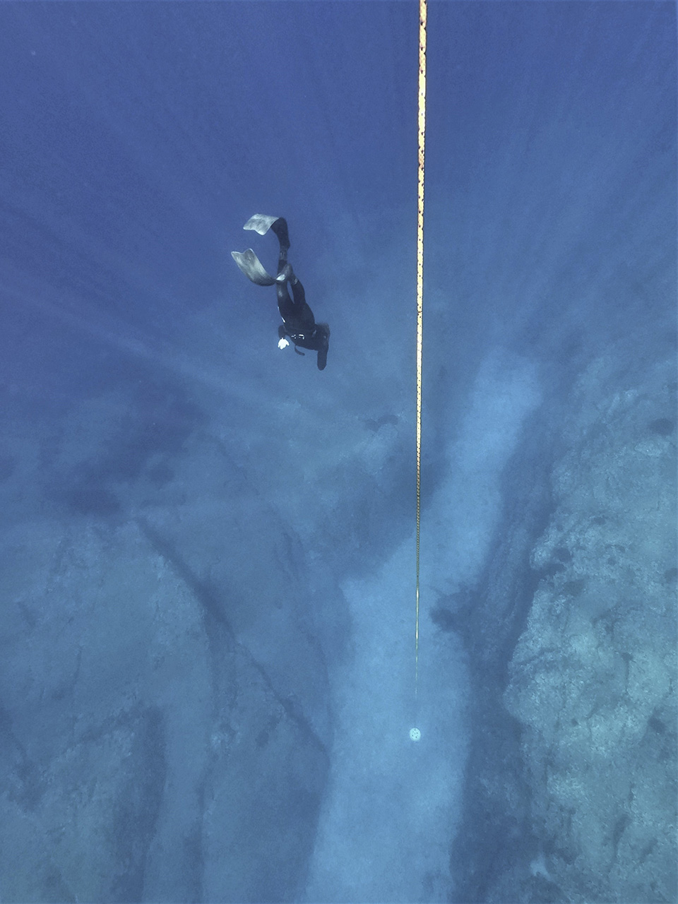 Free immersion Freediving is a unique discipline where the diver ascends and descends by pulling along a dive line, using only their arms during the dive. - PHOTO and VIDEO FREEDIVING : 2 Dives = 200€
